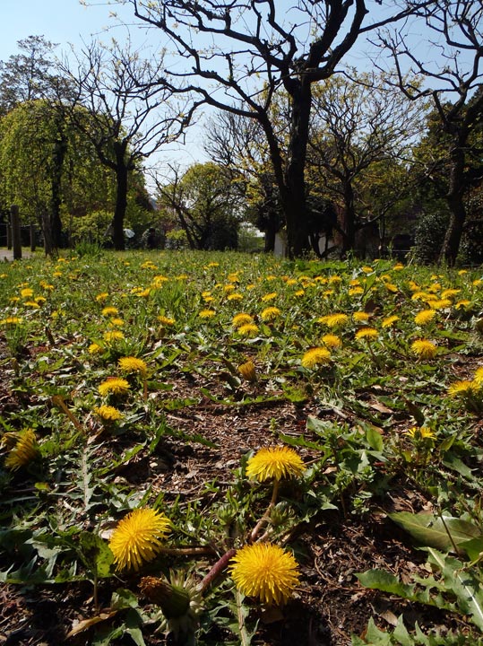 4月5日に訪れた時よりも、梅の木の下に咲くタンポポの数が増えていました。
