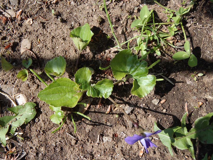 たぶんコスミレだと思うのですが、スミレの種類は多く、下の濃い紫色のスミレと同じく、この写真だけでは名前を特定する情報が不足しています。