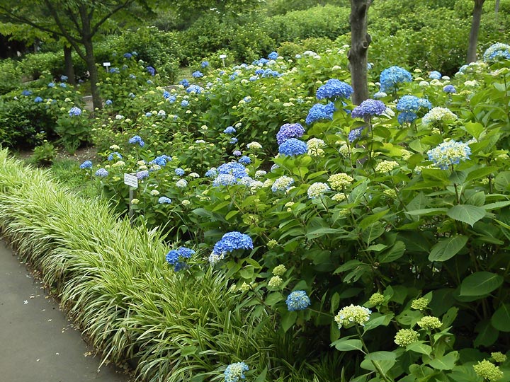 開花の進行具合が去年と同じなら、6月の中旬にはたくさんのアジサイとショウブが堪能できるでしょう。