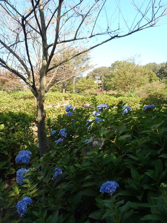 ネットで調べると秋のアジサイもあるようだが、ここに咲いていたアジサイが、その種類なのかは不明。