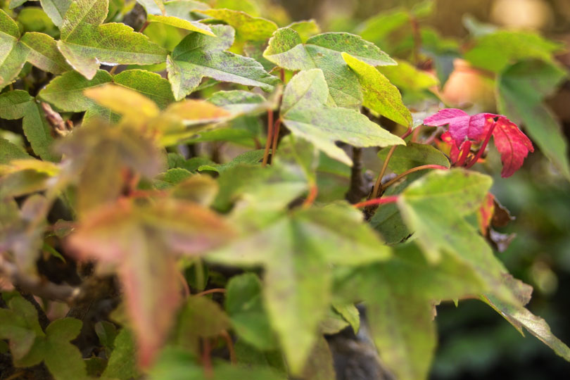 手持ちだったので、赤い葉にピントを合わせたつもりが若干ずれてしまった。