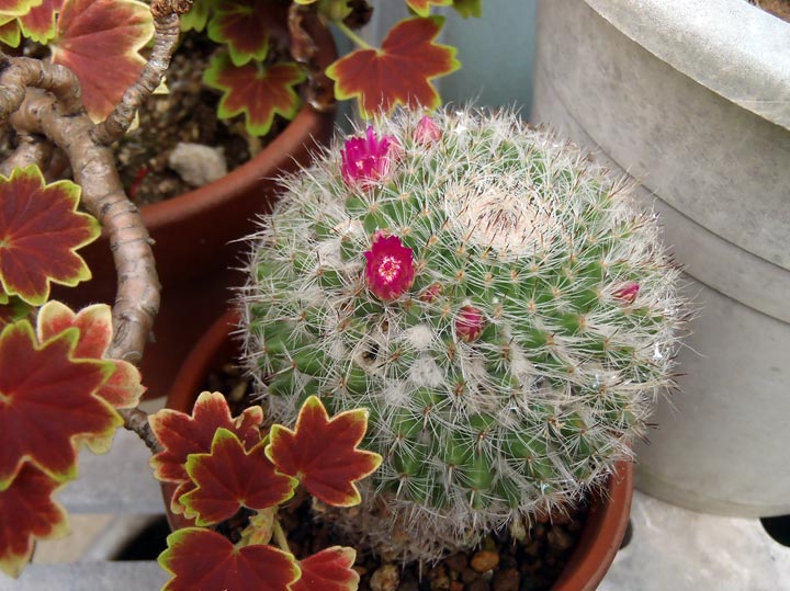 去年、寒くなってから室内に入れた途端、盛大に花を咲かせた100均サボテン。