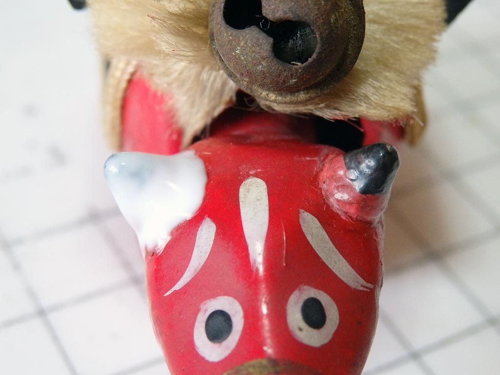 柴犬ケルベロス」で余っていた石粉粘土を使って、円錐状の角にした。