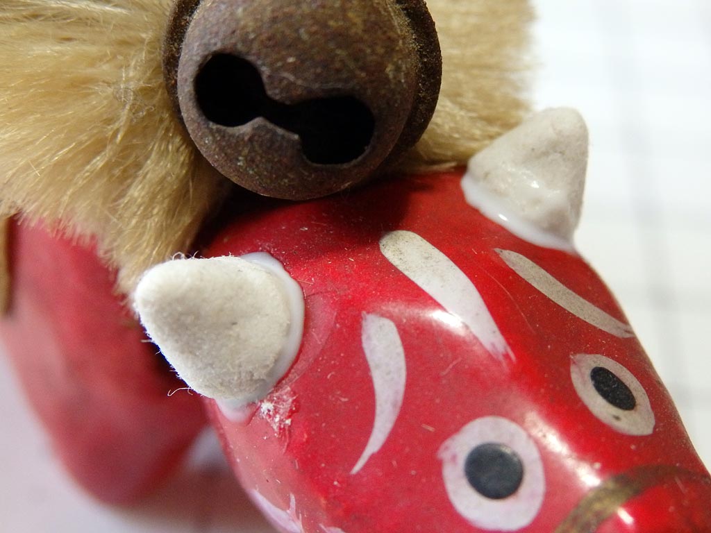 いつの間にか角が折れ、頭を釣っている糸が切れてしまった。