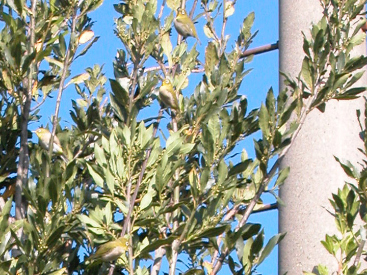 下の写真はちょうどその時の木。よく探して見ると4羽ほど写っている。