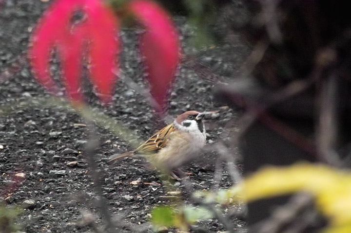 シジュウカラが来るようになって、スズメも家の近くで見るようになった。