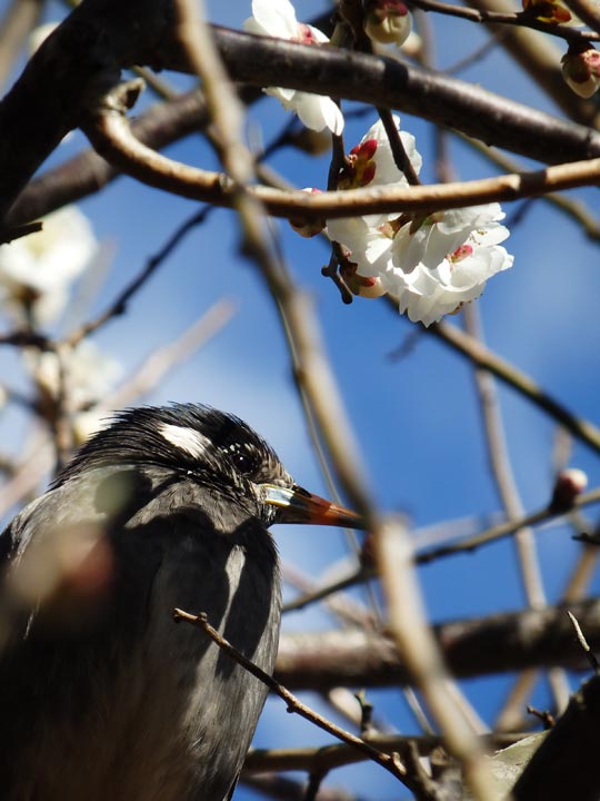 梅の蜜はちょっとしかないから、花から花へ飛び回っていた。