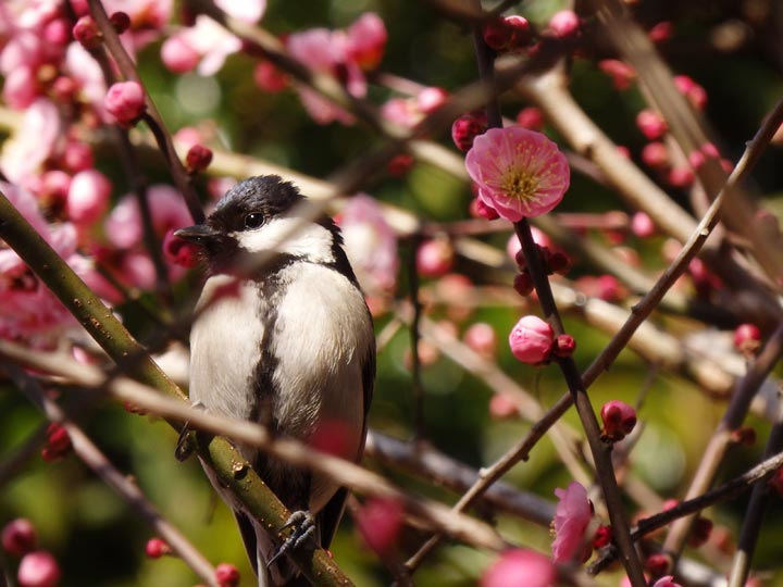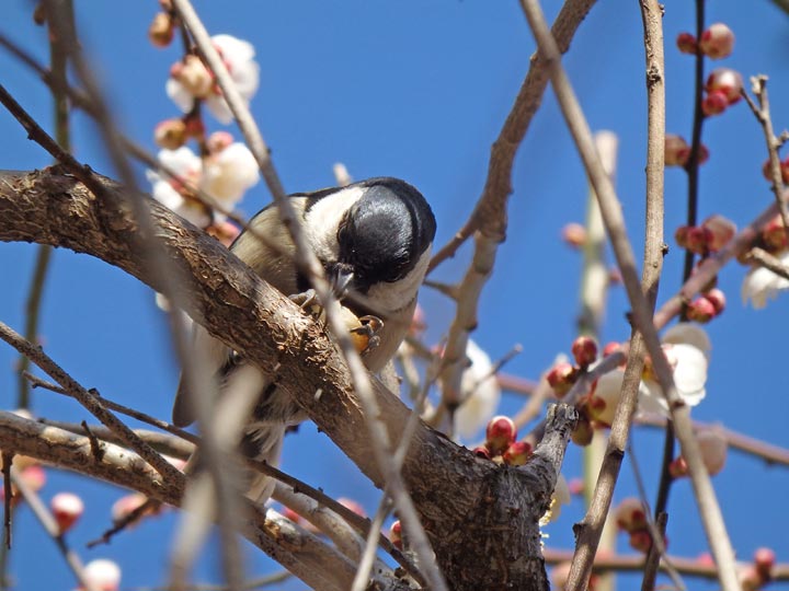 花の咲くころに梅にやってくる野鳥にシジュウカラもいる。