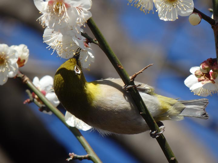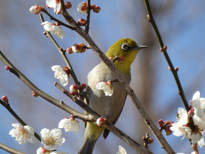 このメジロによって受粉され、夏には梅の実が大きくなっていく。