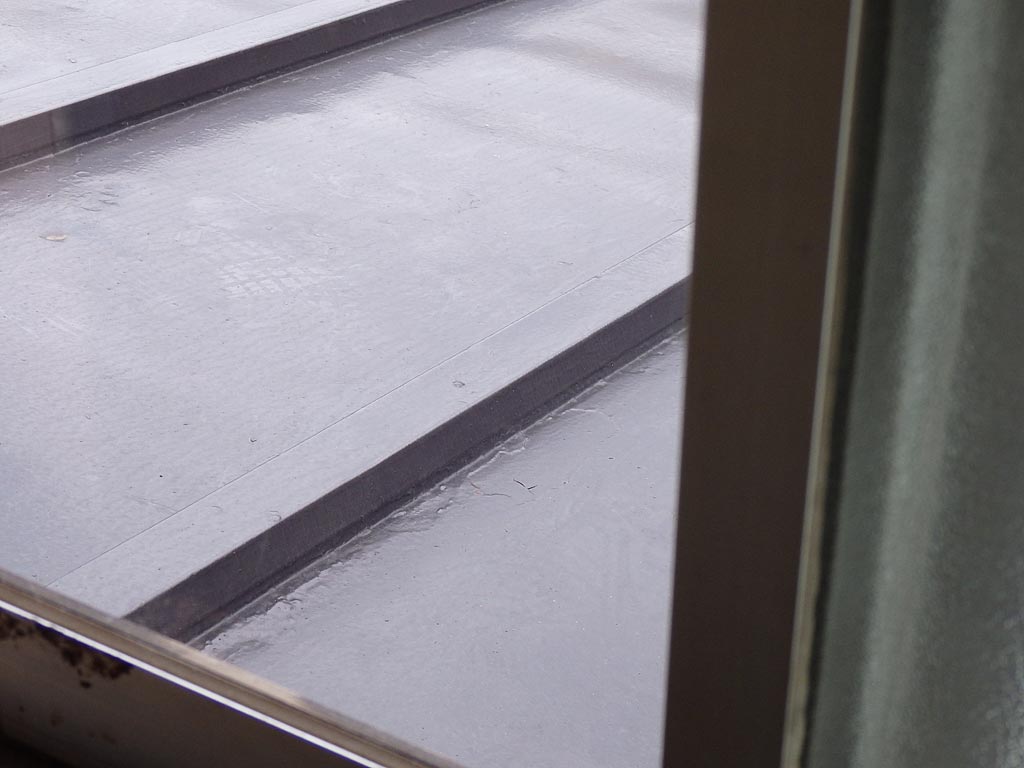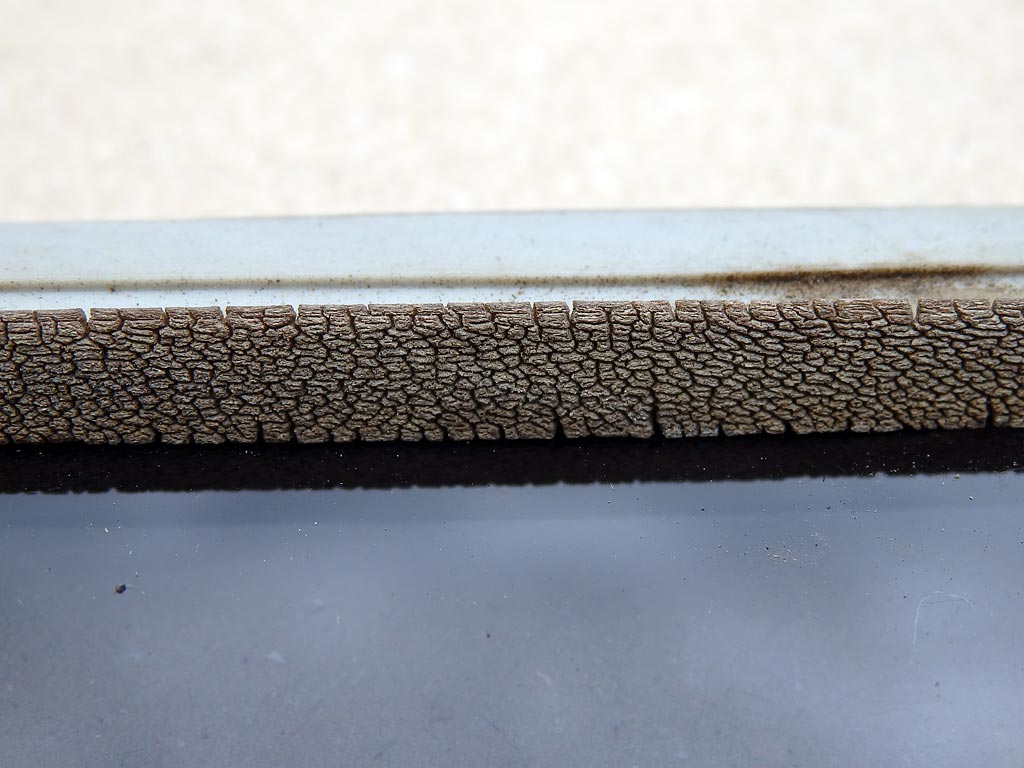 ガラス窓ゴムパッキンの屋外側だった部分は結構ひび割れている。