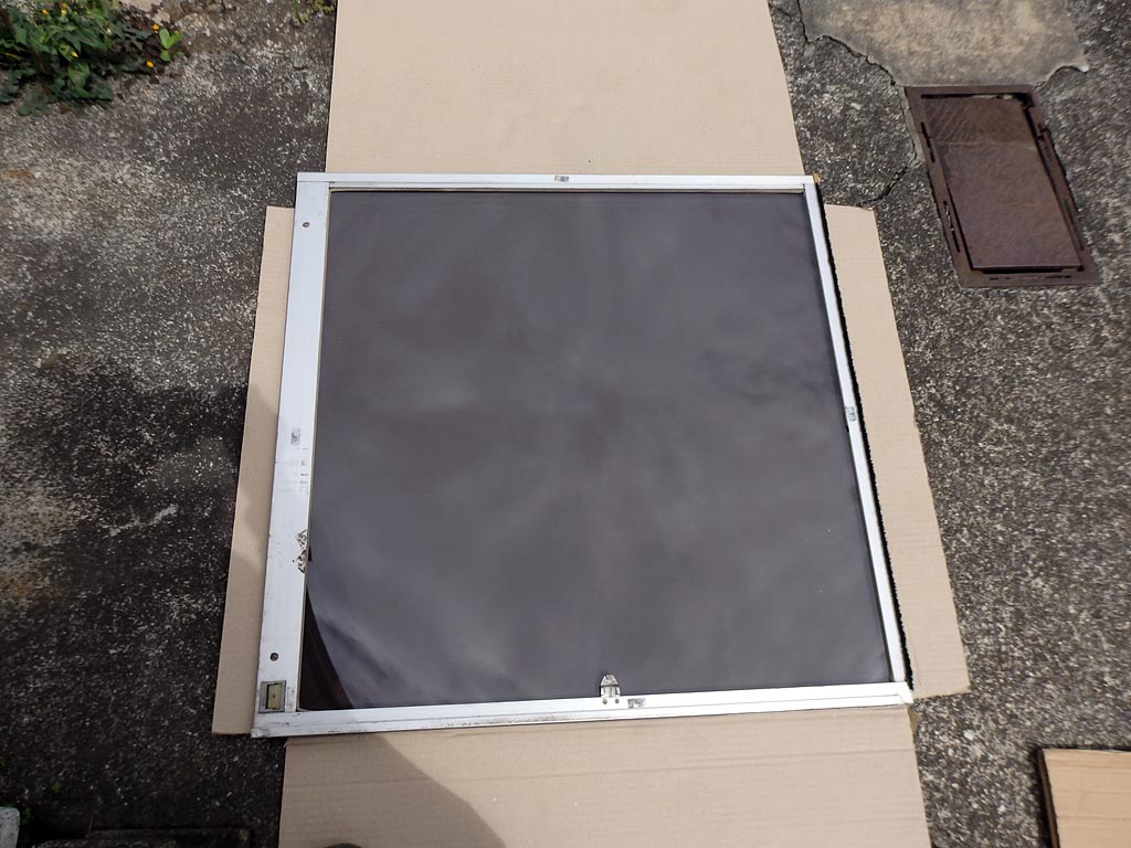 窓枠からガラスを外すのは簡単で、サッシの片側のネジを2本外して、フレームを取り外し、そこからガラスを抜くだけ。