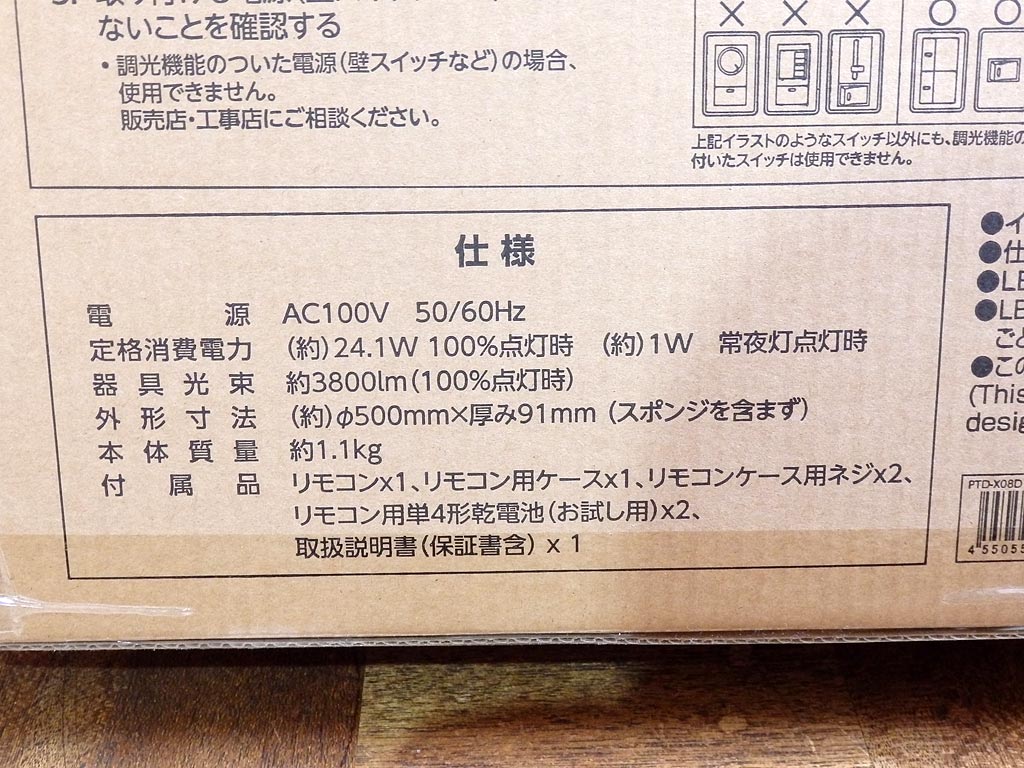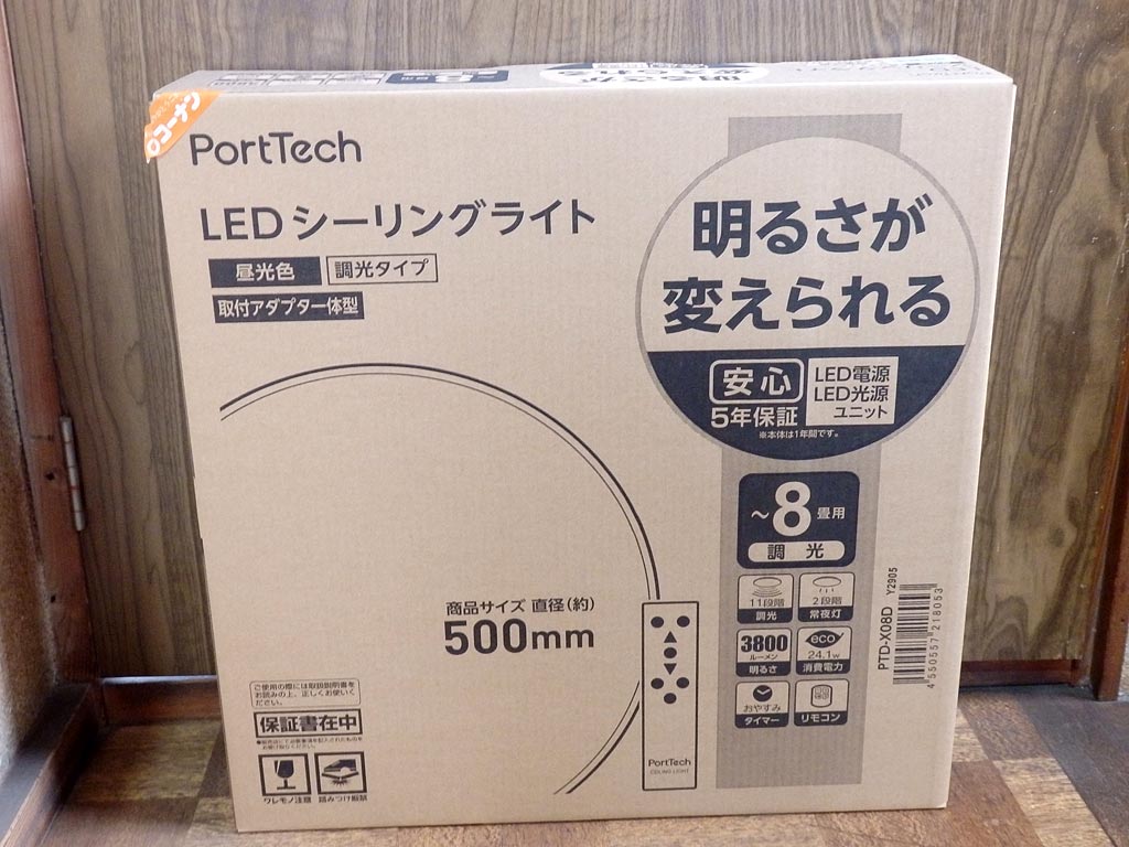 母の部屋用にLEDシーリングライト PortTech PTD-X08D(8畳用)を購入した。