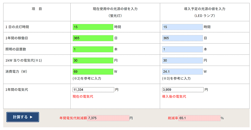 ECO TRUST JAPAN|かんたん電気代シミュレーション」を使用。