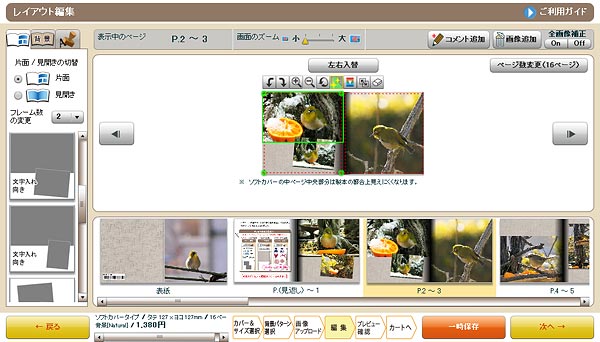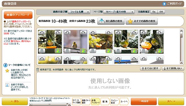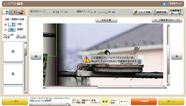 ただし、実際に出来上がるフォトブックの画質の参考にはなりません。