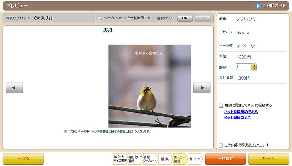 会員登録せずにフォトブックを作成できるのがいいですね。