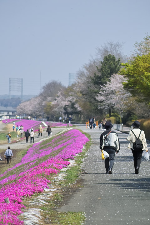 相模川堤防の遊歩道ということもあって、しば桜と桜のシーズンは人が大勢訪れます。