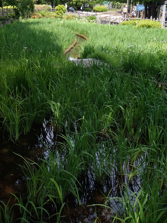 アジサイが咲く前に花を咲かせる菖蒲だが、咲く様子はまったくない。