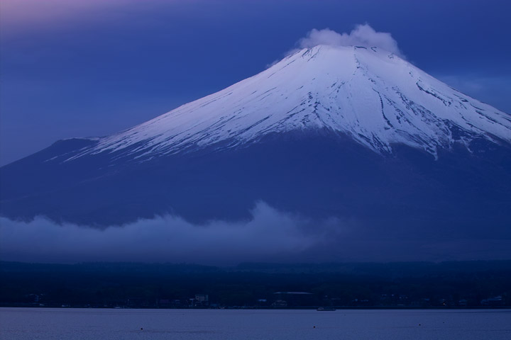 微妙な雲の具合とうっすら明けてきた夜の為、なかなか幻想的な富士山と出会えました。