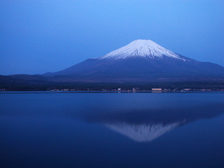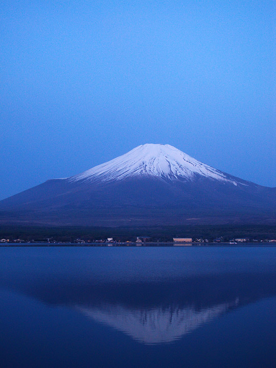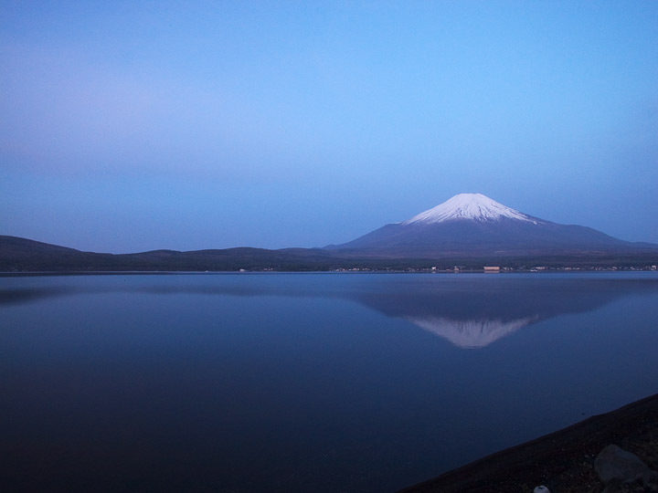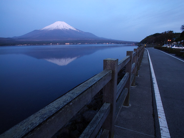 道志を通り、その途中にある山中湖にて、日の出前の富士山を撮影した。