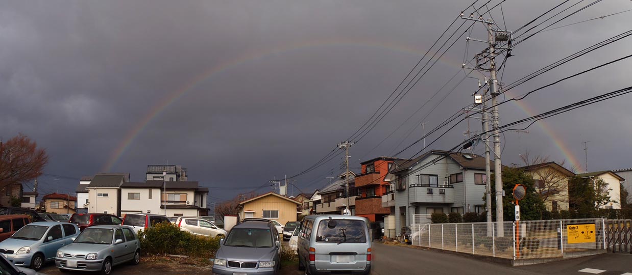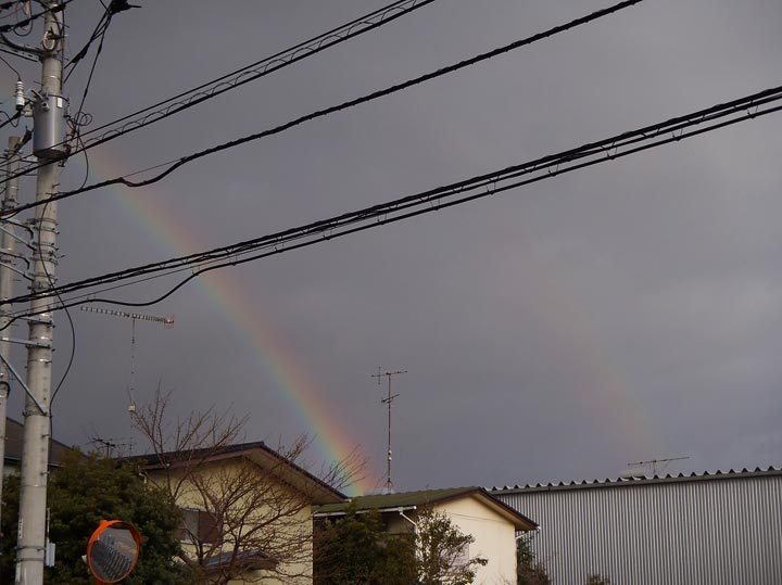 3月31日大荒れの空に出た虹。一部は二重の虹になっていた