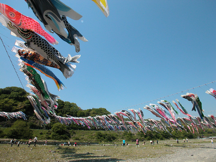 一面に広がった鯉のぼりの壮観さを出すには、やっぱり広角の方がいいかんじ。