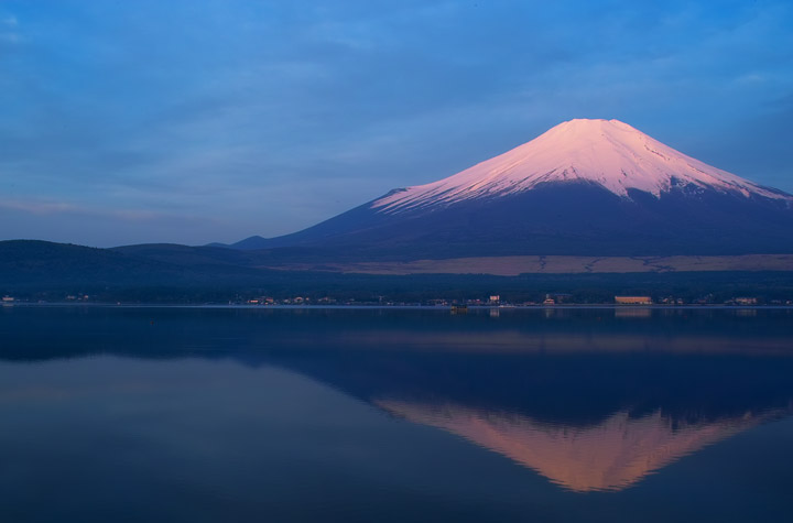 先日山中湖で見た富士山は、うっすらとピンク色に染まった程度で紅富士とはほど遠いものでした。(やっぱり冬でないとダメか)