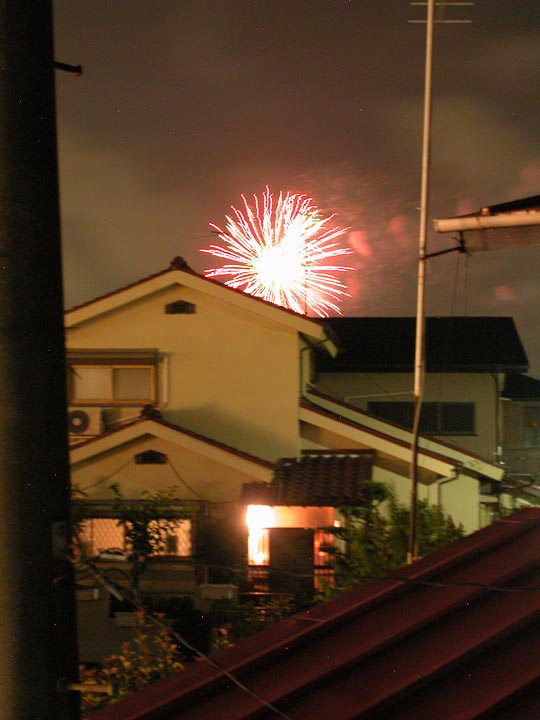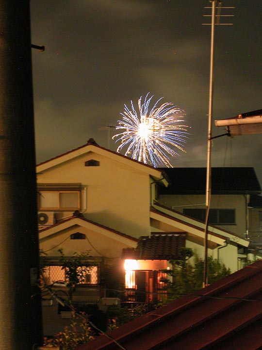 ところが、ふと窓の外を見ると、近隣の住宅の屋根越しに花火が見える。