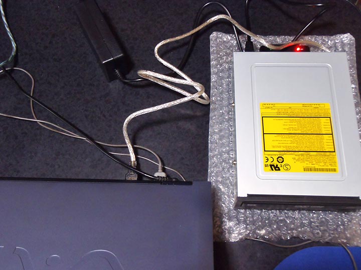 配線がごちゃごちゃしてしまうが、外付け光学ドライブはたまにしか使わないので、見た目はどうでもいい。