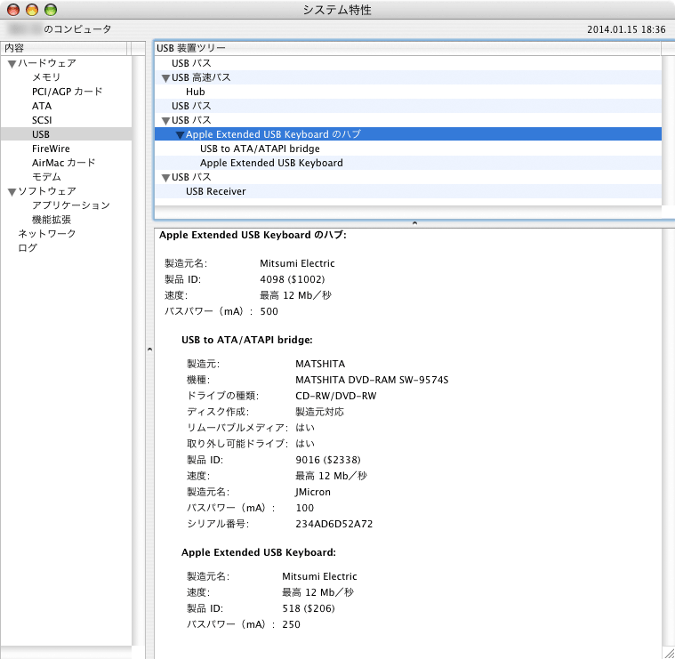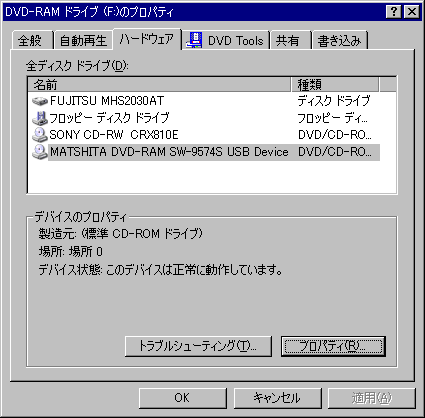 ドライブはMATSHITA DVD-RAM SW-9754Sが使われていることが分かる。