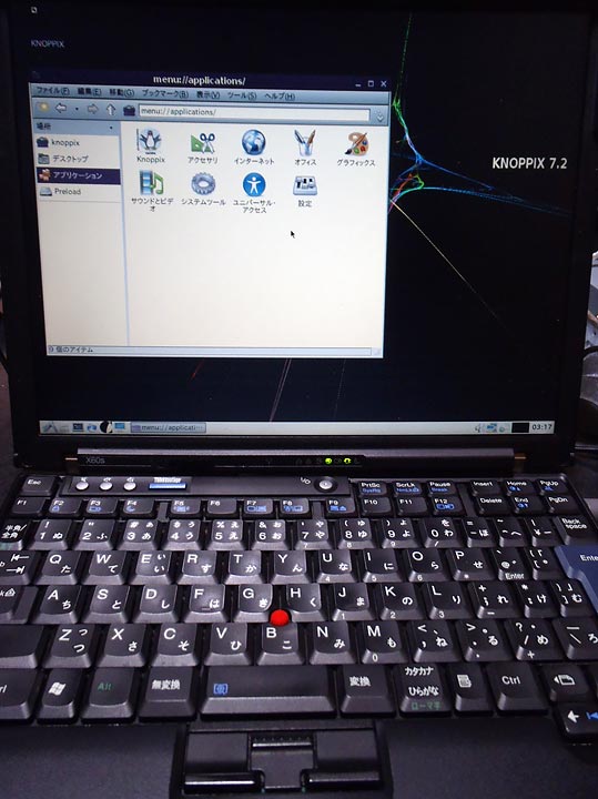 また光学ドライブによるブートは、ThinkPad X60sでDVD-RWに焼いたKnoppix、Ubuntuで起動できた。