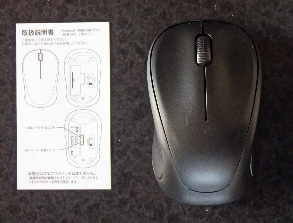 Bluetooth WIRELESS MOUSE本体と説明書。