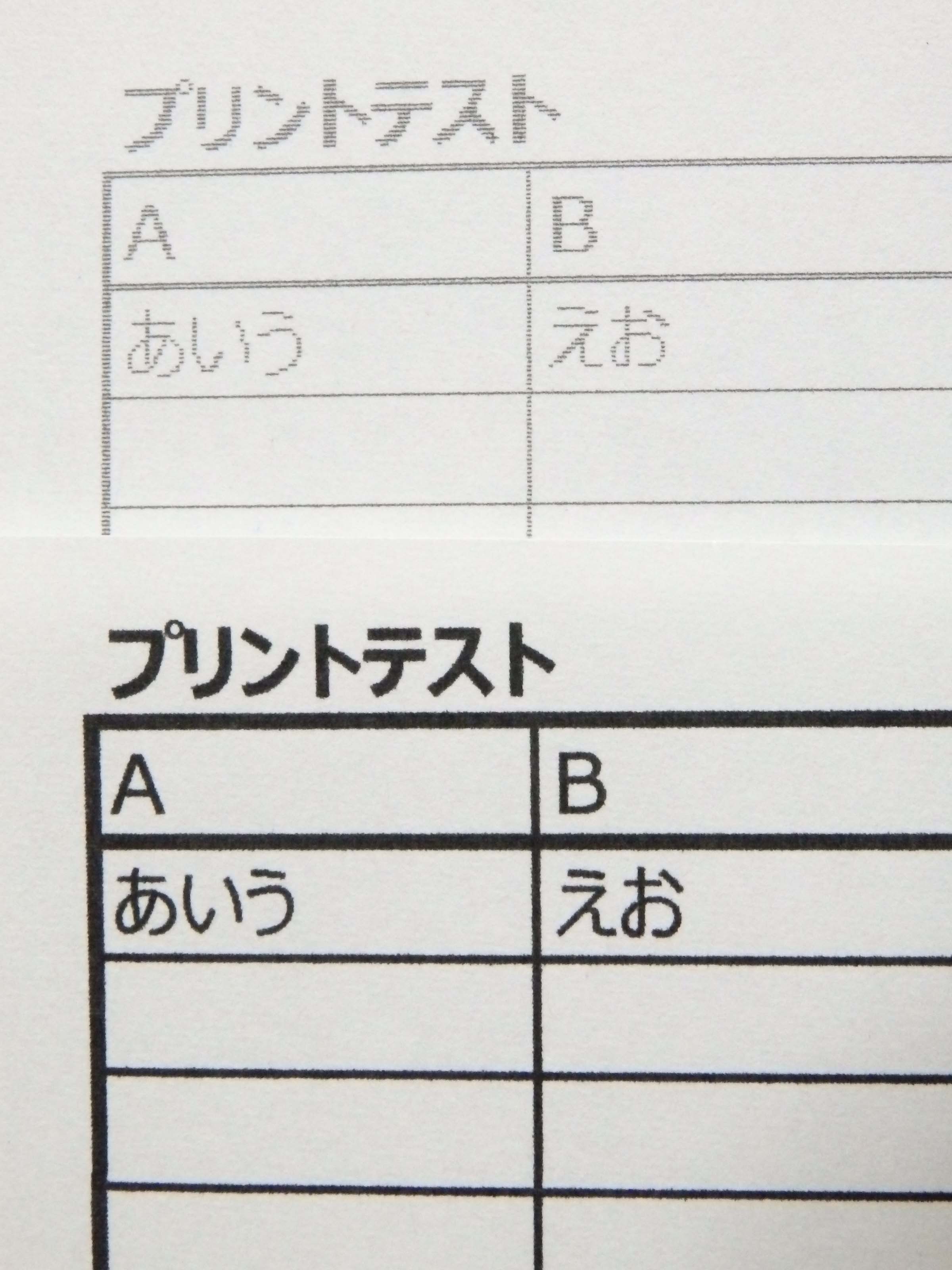 - 十分な品質。通常の印刷はこれで間に合いそう。罫線はわずかにズレが見られる。