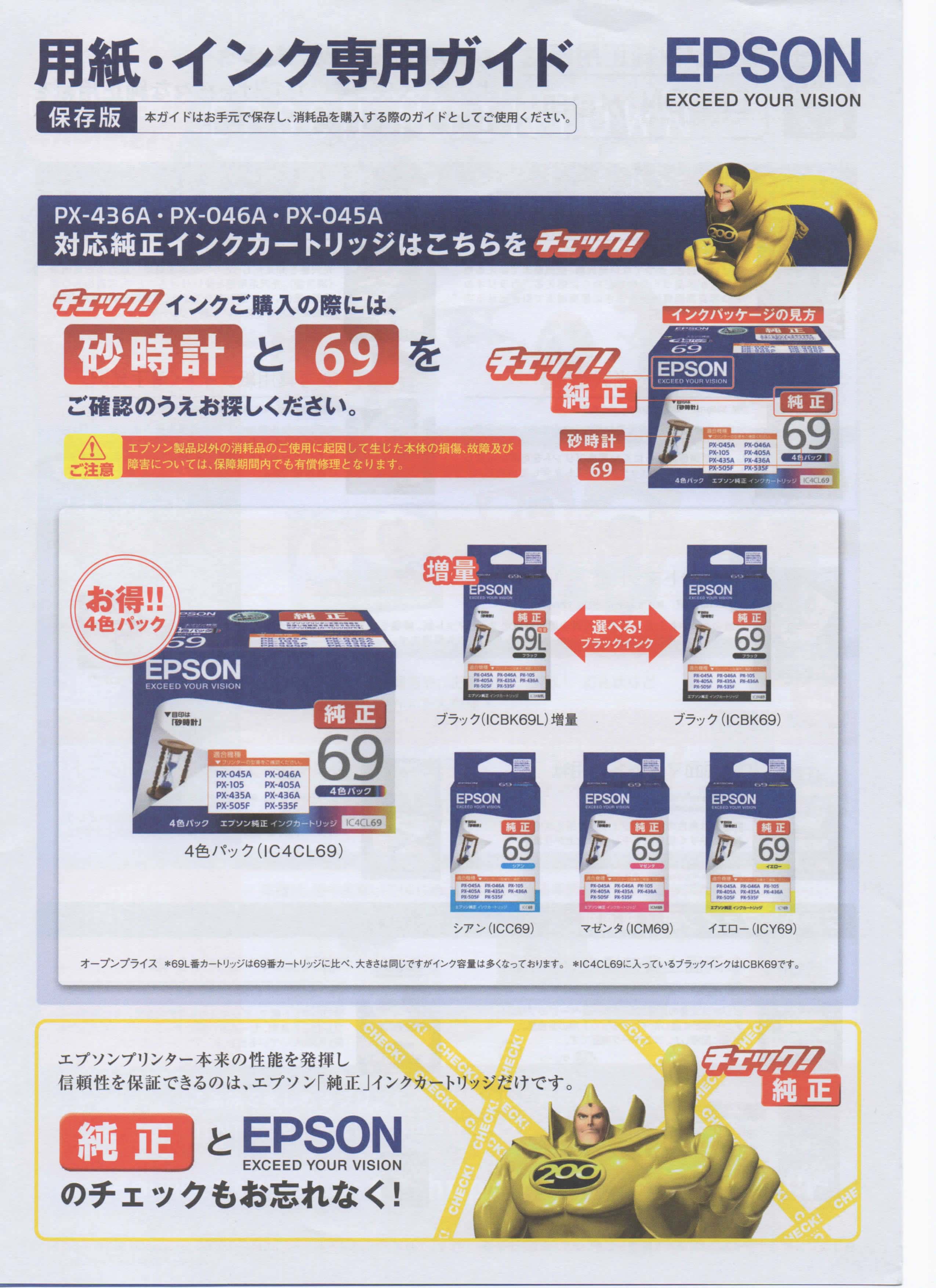 「用紙・インク専用ガ」の文字周辺や文字のない部分に粒々が印刷されているが、これは原稿の薄い青い色が印刷されたもの。