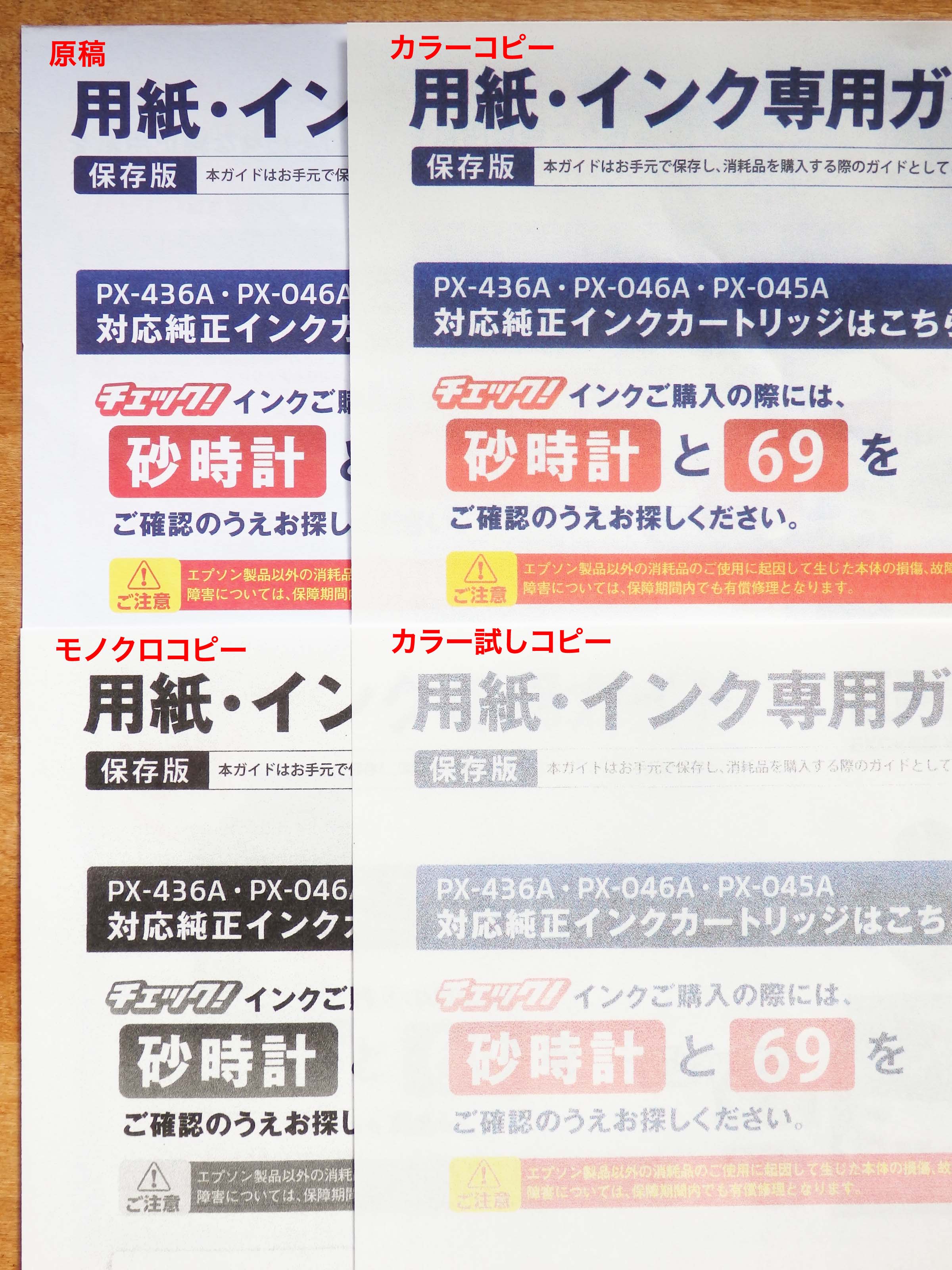 なおコピー直後は紙が少しふやけた感じになる。 - カラー試しコピー