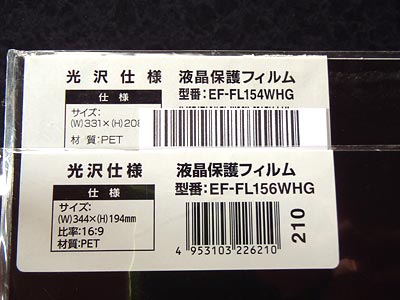 購入したのは、エレコム液晶保護フィルム光沢仕様EF-FL156WHG。
