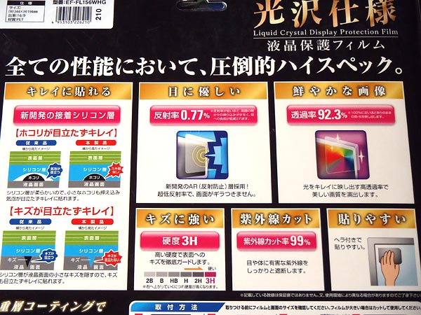 エレコム液晶保護フィルム光沢仕様EF-FL156WHGの特徴。