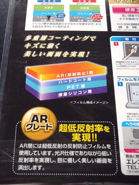 キズに強いというのも本当のようで、手を滑らせてテレビのリモコンをPCの上に落としてしまい液晶フィルムの表面に傷らしきものがついてしまったが、クリーニングクロスで拭いたところすっかり消えてた。