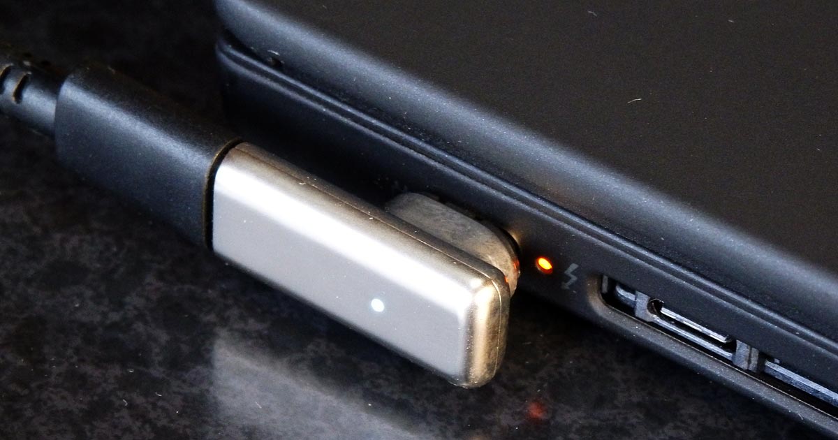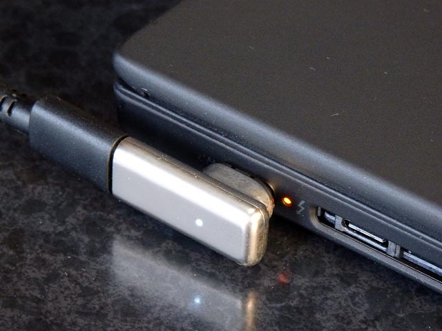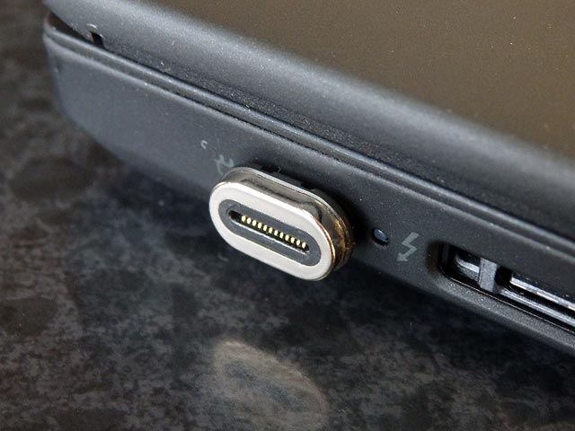 USB-C マグネット変換アダプターをThinkPad P14sに接続したところ。