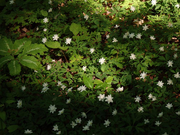 林の中に入ってみると、涼しい空気とともに真っ白なキクザキイチゲの花が出迎えてくれます。