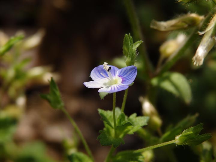 梅の木の下にはオオイヌノフグリが青く小さな花を咲かせています。
