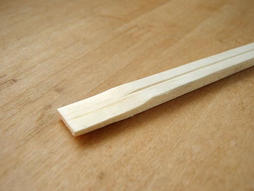 また割りばしは以下のように、先端の厚さを薄く削って使用している。