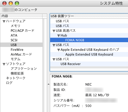 - OSX10.3は対応してない。(OS10.4はドコモの携帯と純正ケーブルでマウントされたという情報はある)