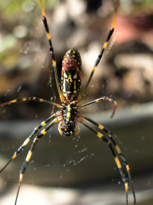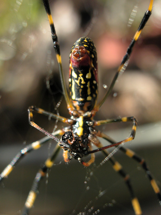 すぐ手の届く場所にジョロウグモが巣を張っていたので、チャンスとばかりに撮影。