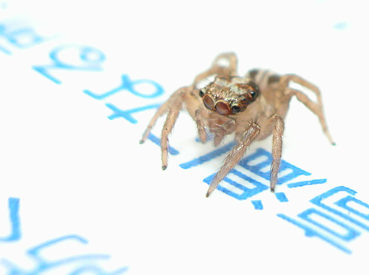 部屋の中をちょくちょくうろついているミスジハエトリグモを撮影した。