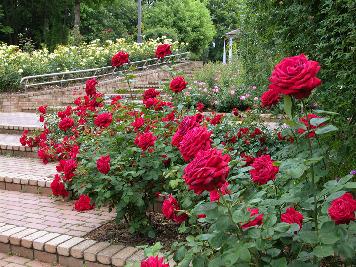 今回は北側のバラエリア1のバラを公開(以下地図の上赤枠)