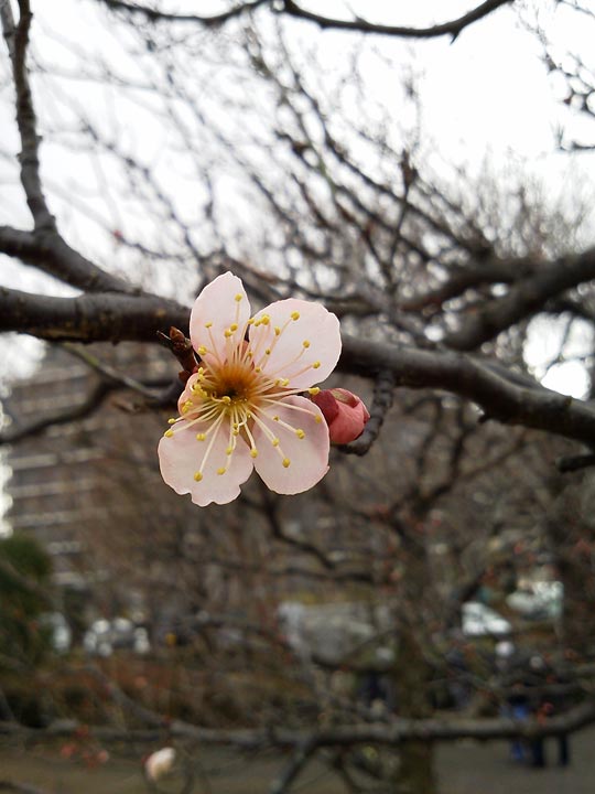 ここのところ日差しが暖かかったので、早咲きの梅が咲いたのだろう。