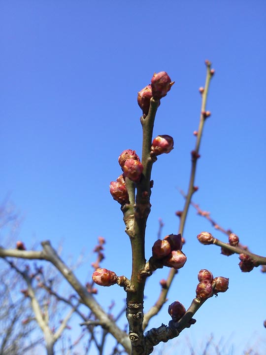 梅はまだまだ蕾の状態ですが、徐々に大きくなっています。