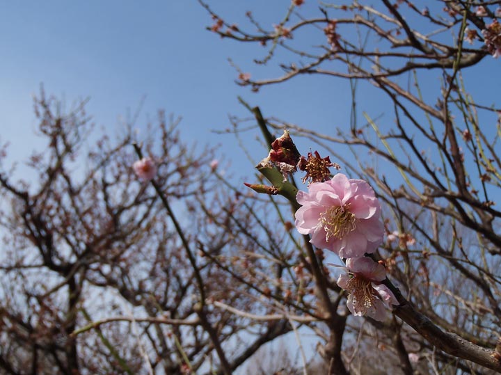 かなり暖かい日が続き、風の強い日もあったので、梅の花は一斉に散ってしまったのかも知れません。