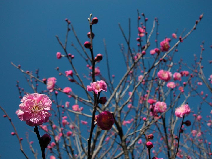 花びらを広げて、春を浴びようとする梅が楽しめます。