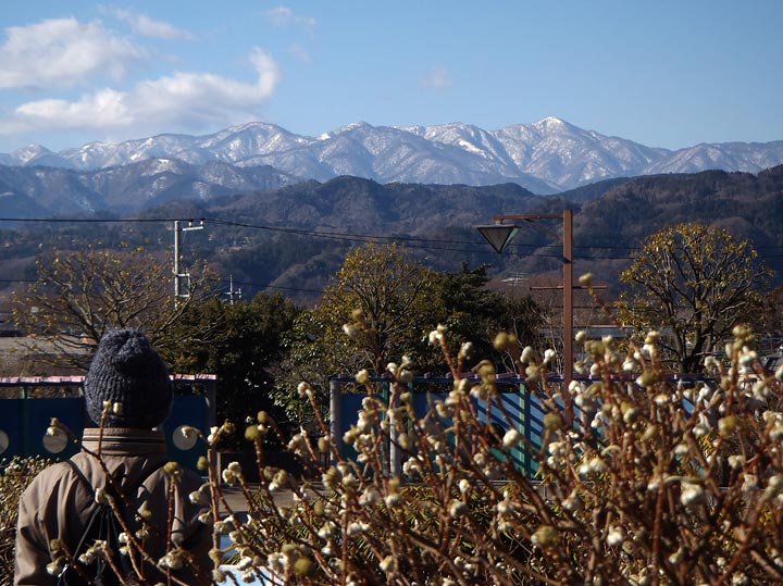 それよりも目についたのが、遠くに見える雪を被った山々。
